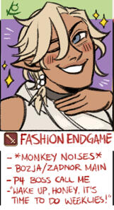 Find me over @ Bluesky !Shipping Rules☆ IC =/= OOC. I am more than willing to be your friend but just because my character flirts or even ends up in a relationship with yours? It doesn't mean I, the writer, want that. Please respect my boundaries and separate the two.☆ Open to plotting established relationships: Romance, Hatemance, Friendship, Rivalry -- you name it, I'm here for it!☆ All relationships, unless specified, are in their own separate AU's. I'm a multi-ship writer and enjoy writing all aspects.GENERAL OOC☆ Writer is over 30 & will not interact with minors. Any artwork that may pop up on here is mine unless credited otherwise!☆ I'm big into paragraph writing, plotting out over-arcing stories, and just generally anything.☆ Do not pressure for interactions - sometimes the mental energy isn't there or I'm just not up for writing.☆ I love dark themes, light themes, mature themes and even erotic roleplay. I'm down to clown as long as we're all having fun here.☆ If you'd like to add me on discord/we've talked more than few words, feel free to ask for it!